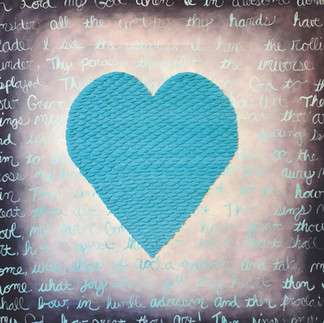 PB: My faith is shown in my work by creating a blending that shines a sense of light, representing the love and light of Jesus. “He is the light of the world,” - John 8:12. The texture represents gratitude in my heart. As I have been lavished, I want others to feel surrounded by all that He has to offer. Creating works that have hymns or words that reflect his truths is another way I incorporate my faith, as well as the title I chose for each piece.